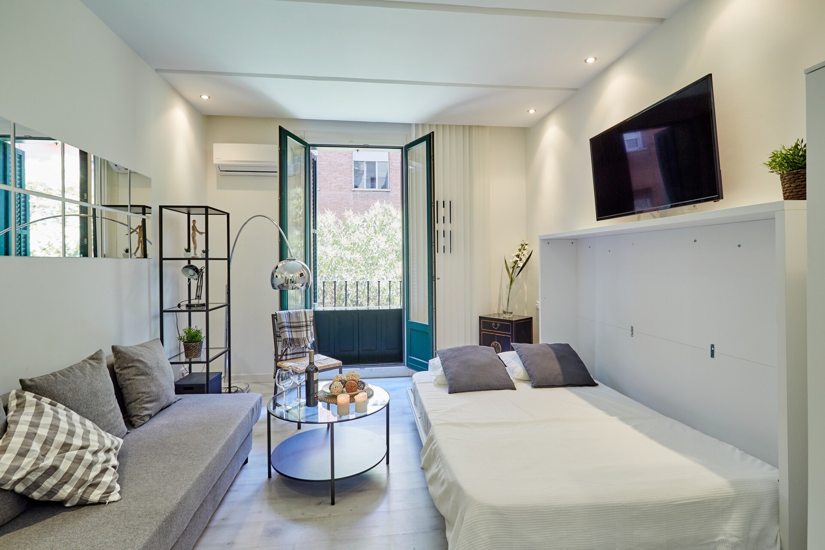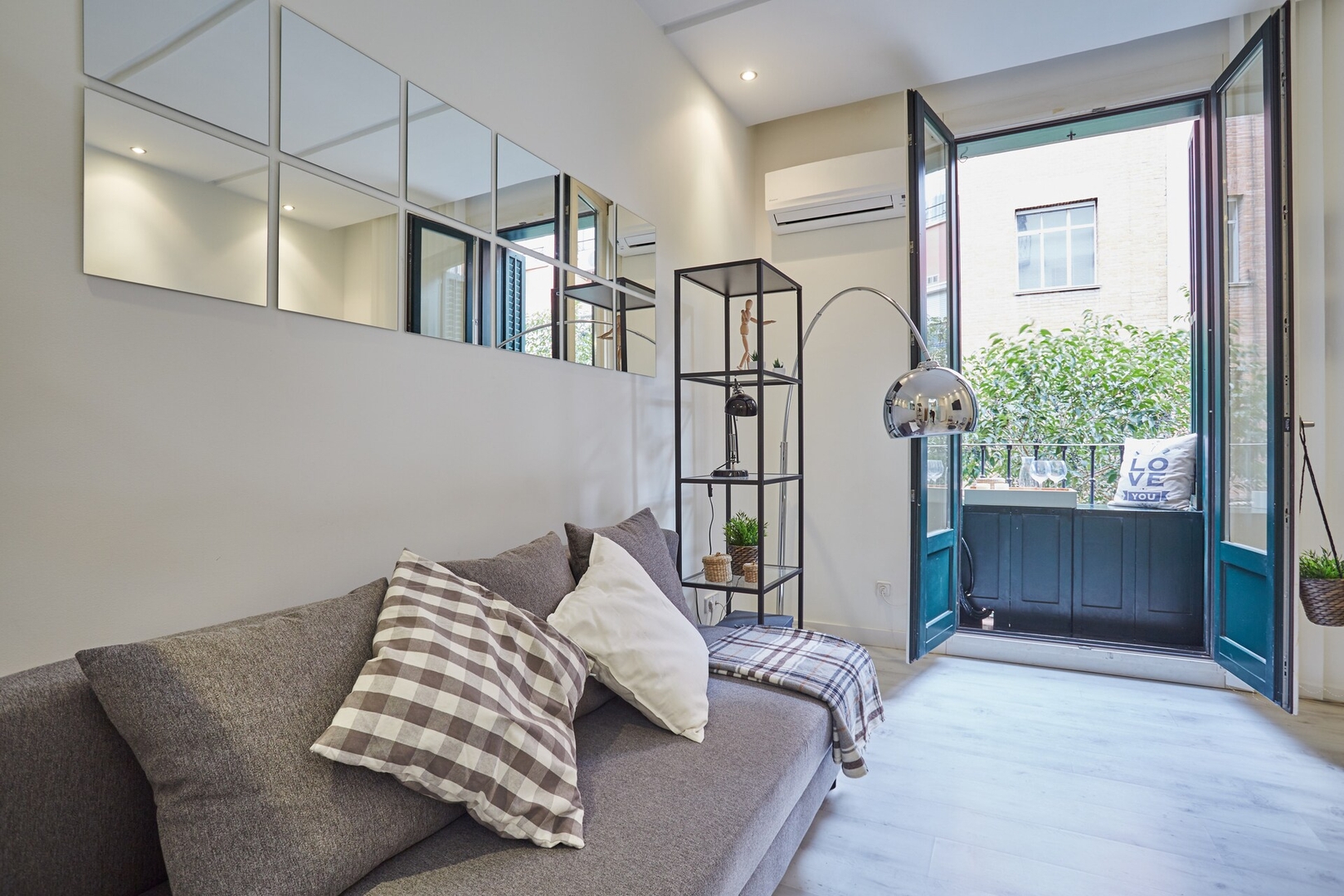 Loft ideal con balcón para una escapada en el corazón de Madrid, a pasos de Gran Vía. Su ubicación permite explorar la ciudad caminando, sin necesidad de transporte. Disfruta de un espacio moderno y renovado ubicado en una calle en medio de la vibrante vida madrileña. Priorizamos la limpieza y aplicamos medidas especiales de desinfección para tu seguridad. Aquí tendrás una experiencia auténtica y cómoda en el centro de la ciudad.