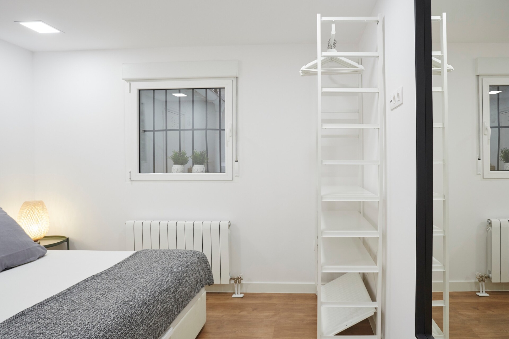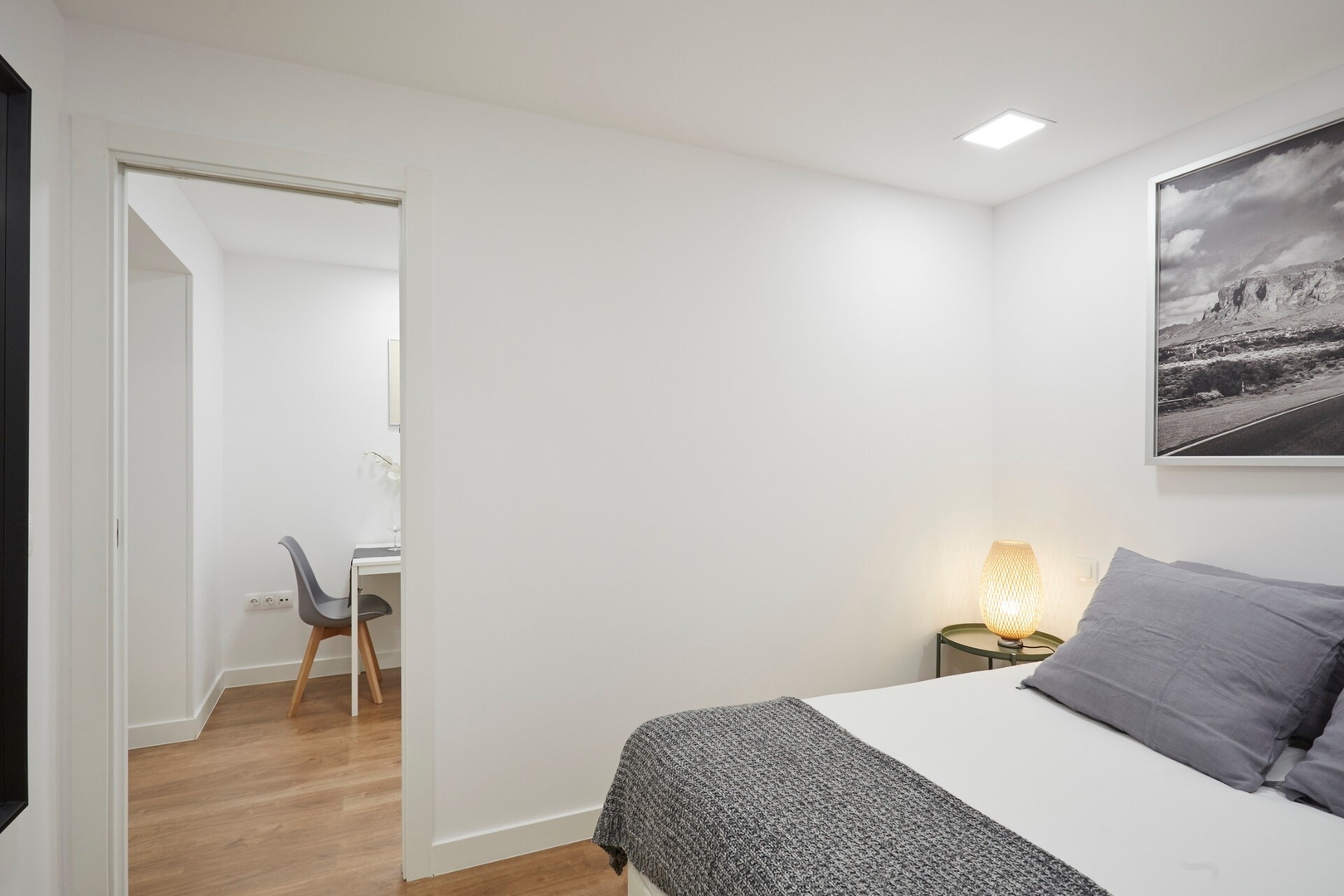 ✦ Distribución: Una cama de 140 cm, con un sofá, Smart TV y una mesa para comer o usar como espacio de trabajo, con Wi-Fi, AC, calefacción y un armario con ganchos.