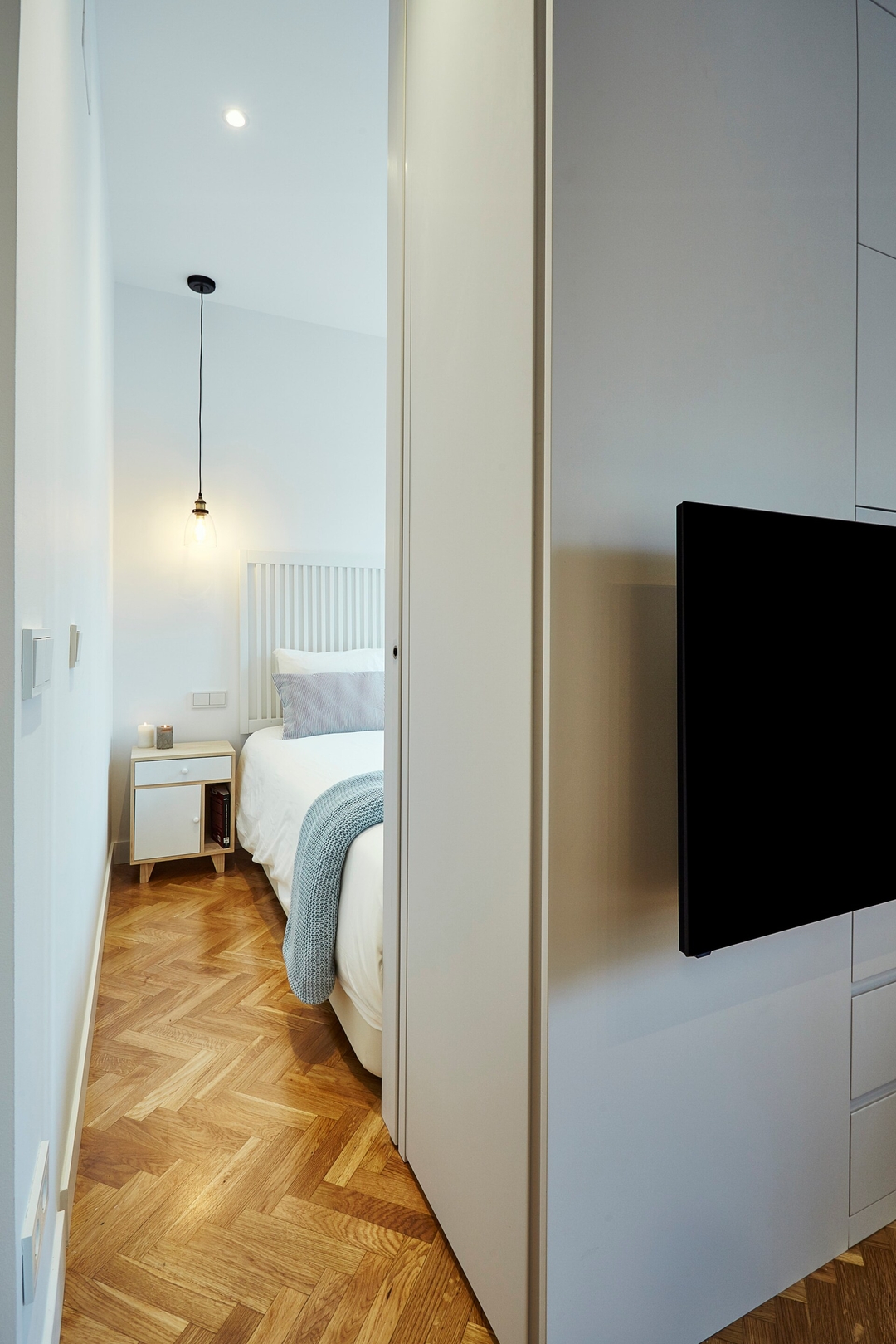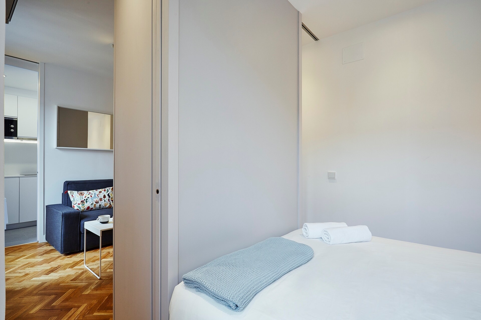 ✦ Distribución: Una cama de 140 cm, con un sofá, TV y una mesa para comer o usar como espacio de trabajo, con Wi-Fi, AC, calefacción y un armario con ganchos.