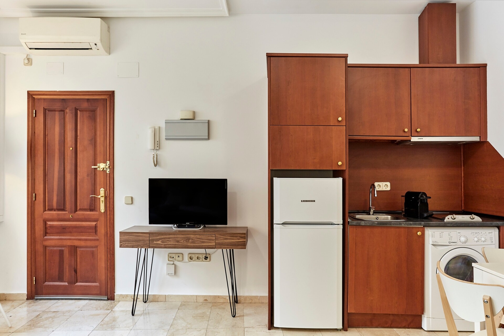 ✦ Distribución: Una cama de 140 cm, con un sofácama, TV y una mesa para comer o usar como espacio de trabajo, con Wi-Fi, AC y calefacción.