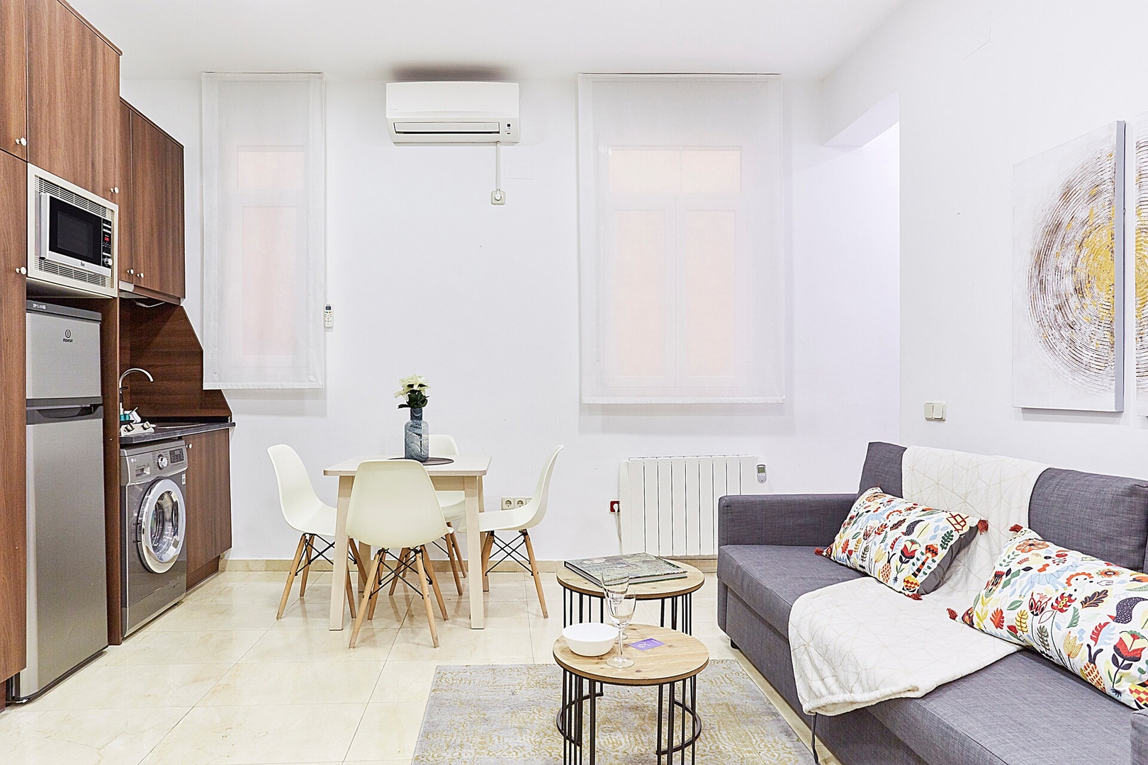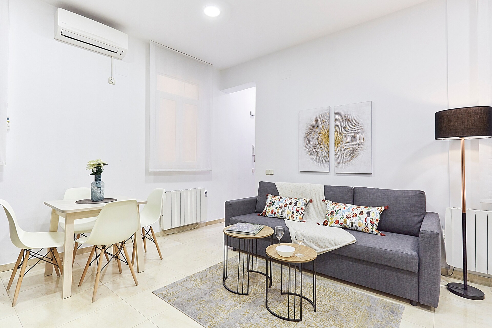En pleno centro de Madrid, el apartamento está ubicado entre los barrios con más vida de Madrid, Chueca, Malasaña, Centro, a pocos pasos del bulevar más famoso de la ciudad, la Gran Vía, que aglutina restaurantes de todo tipo, tiendas variadas y originales y algunos de los edificios más icónicos de la capital.