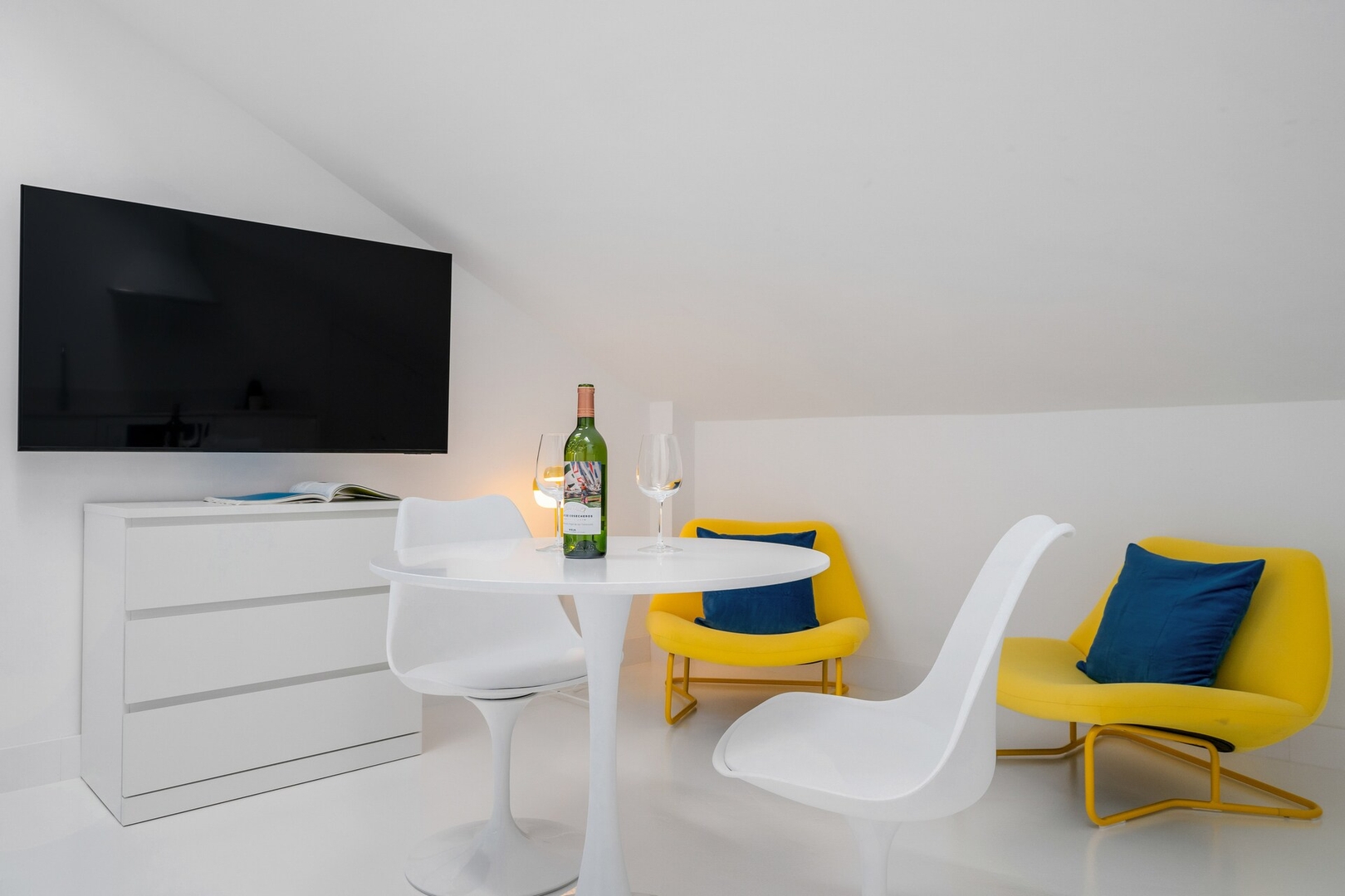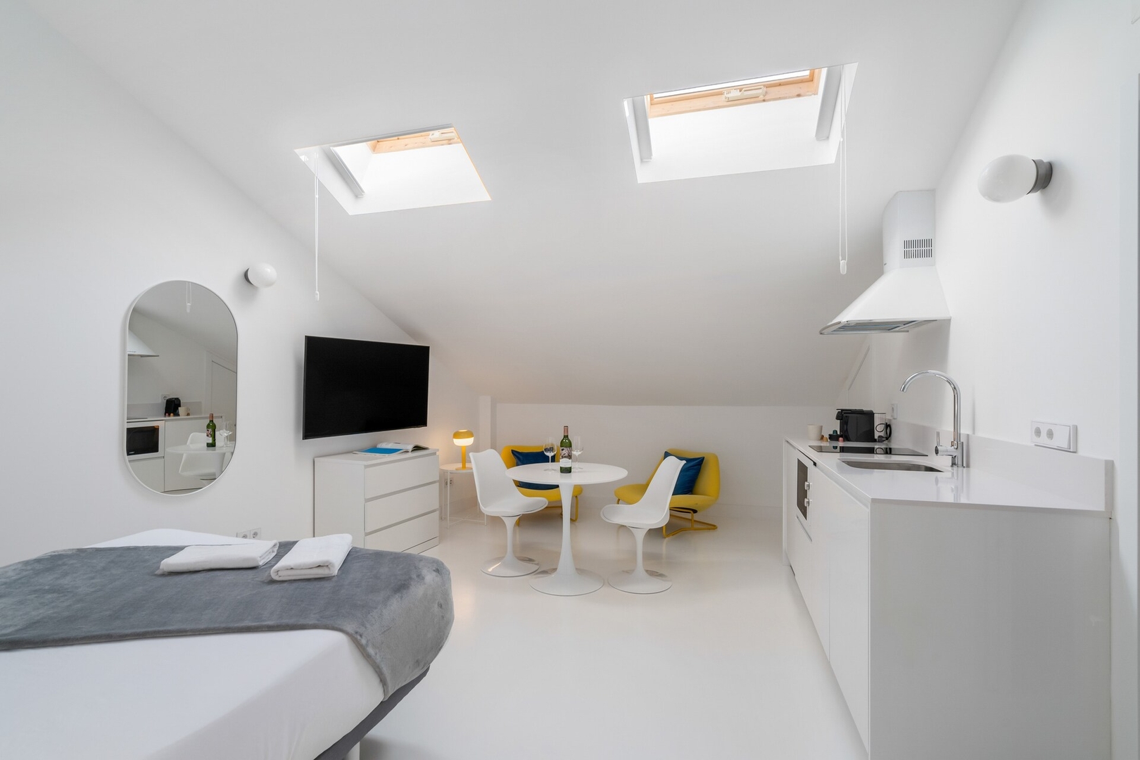 ✦ Distribución: Una cama de 140 cm, Smart TV y una mesa para comer o usar como espacio de trabajo, con Wi-Fi, AC, calefacción y un armario con ganchos.